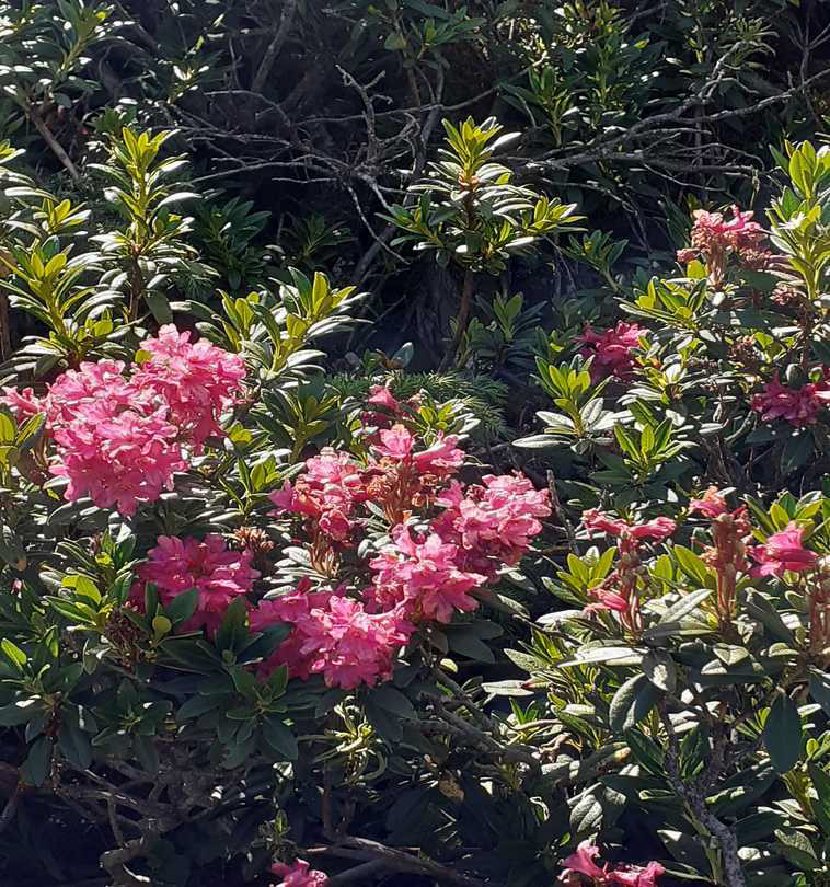 Nous nous sommes arrêtés au bord du lac de Bésines pour déjeuner. Juste avant, des champs de rhododendrons à perte de vue se sont offerts à nous. Pour moi qui parcours les Alpes de Haute Provence chaque été en randonnées, j’ai découvert des paysages très ouverts avec des vues circulaires sur les crêtes, entourant le pic d’Auriol, donnant des respirations salutaires.